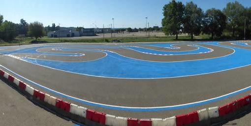 Les plots de chantier rouge et blanc de la ligne droite des stands ont été supprimés et remplacés par des poutres béton peintes en rouge et blanc.