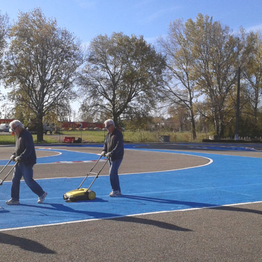 Travaux à la piste, mise en places du panneau club sur podium 11 Novembre 2015